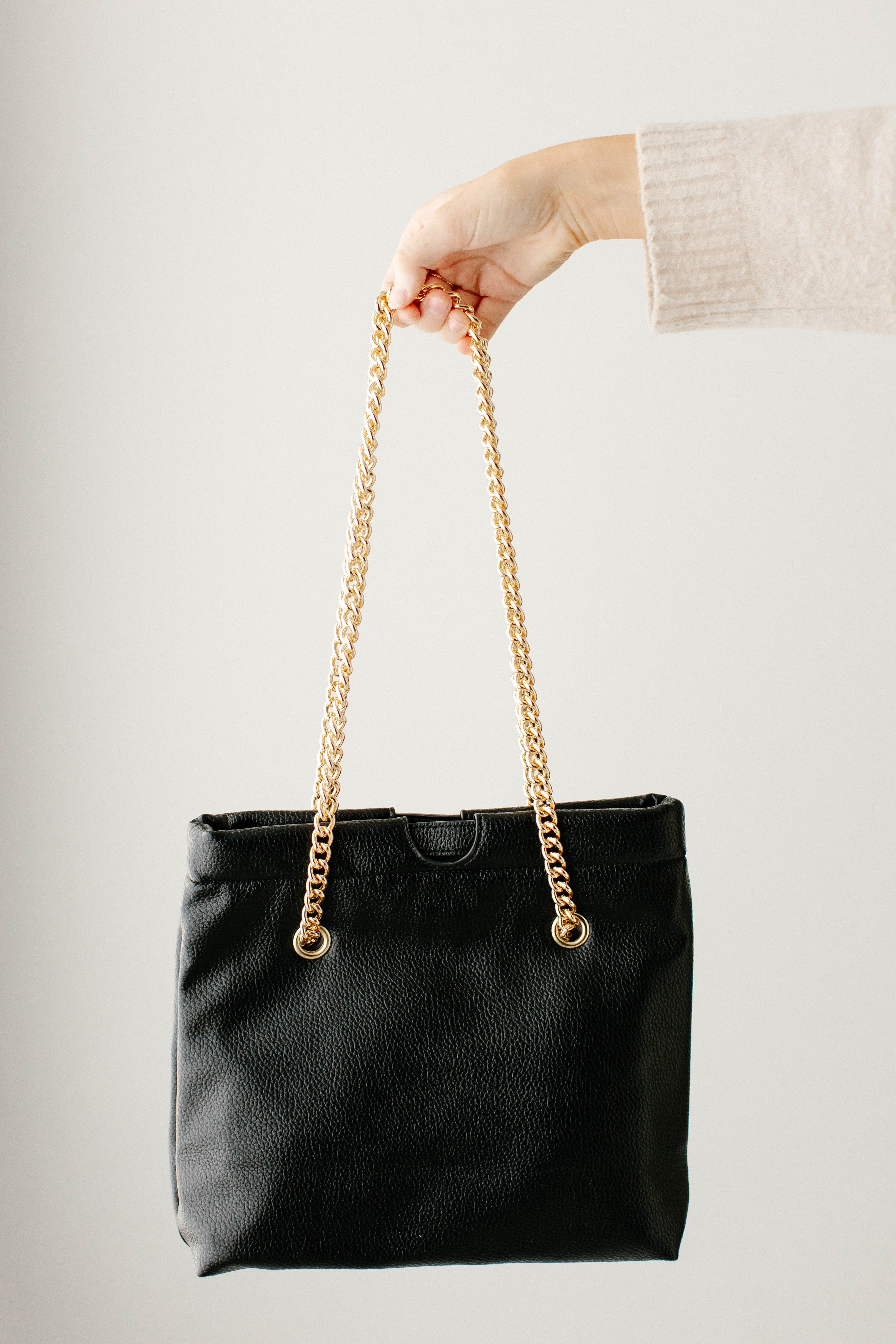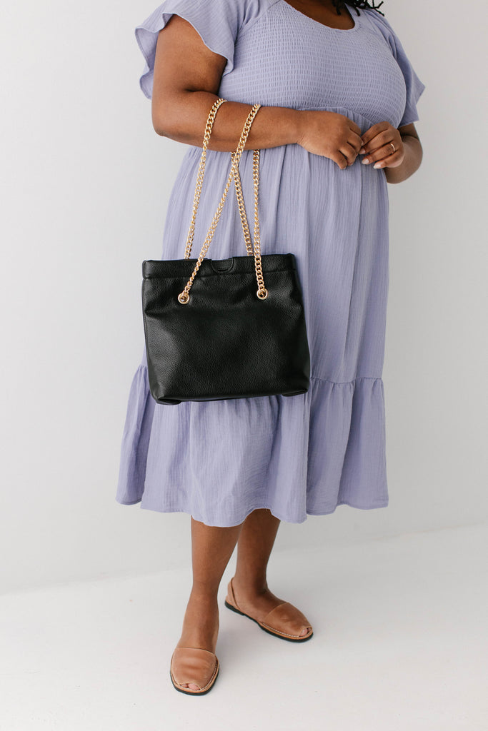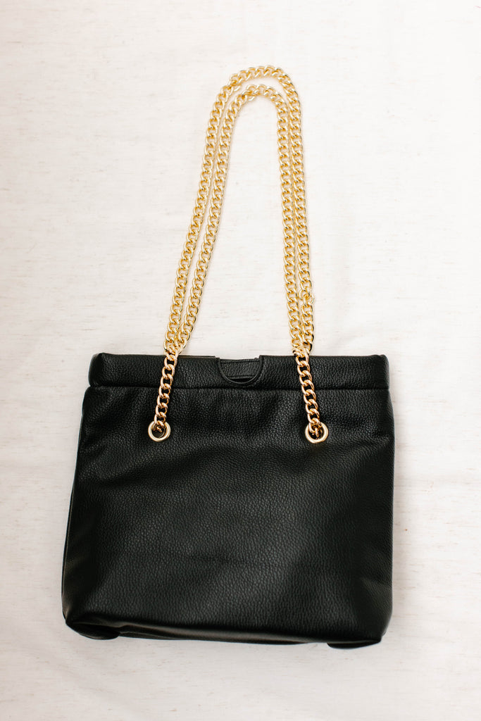Vegan Leather Gold Chain Strap Purse in Black