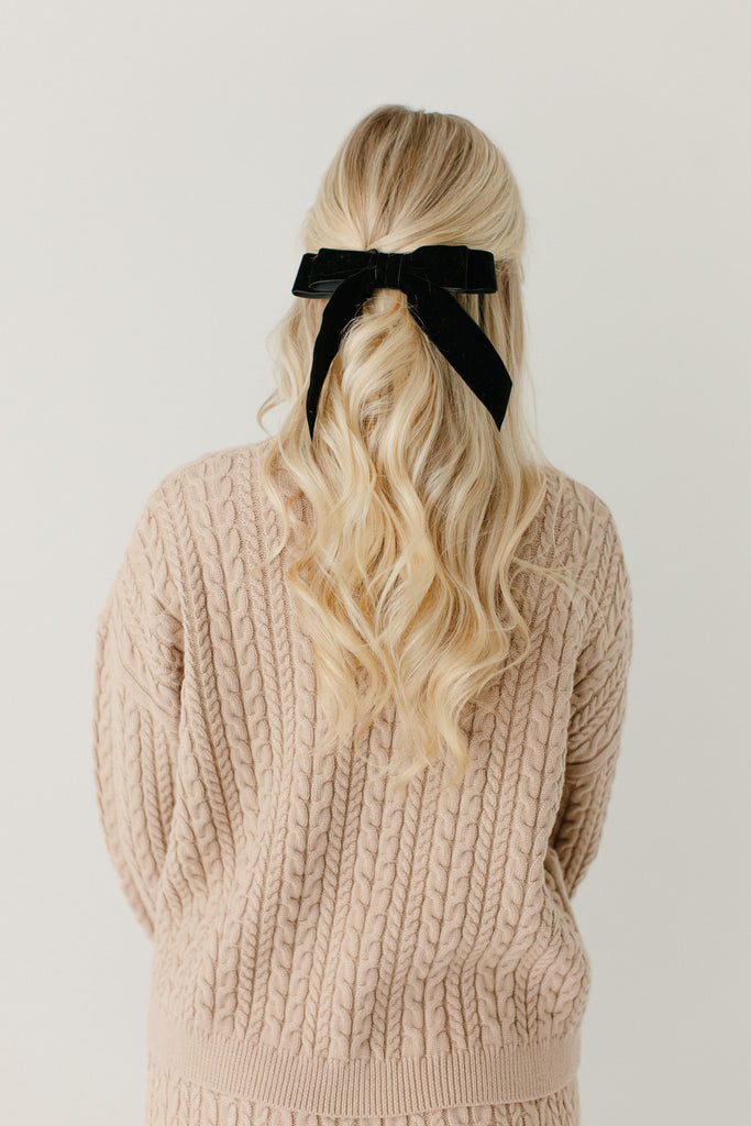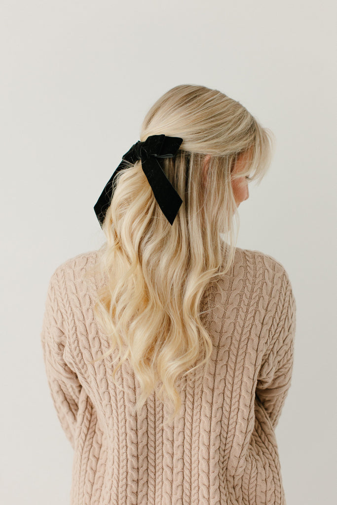 Elevate your hair this holiday season with the cutest hair bow! The Velvet Double Bow Barrette has the sweetest double bow detailing and french barrette closure, perfect for adding to a half-up hairstyle.