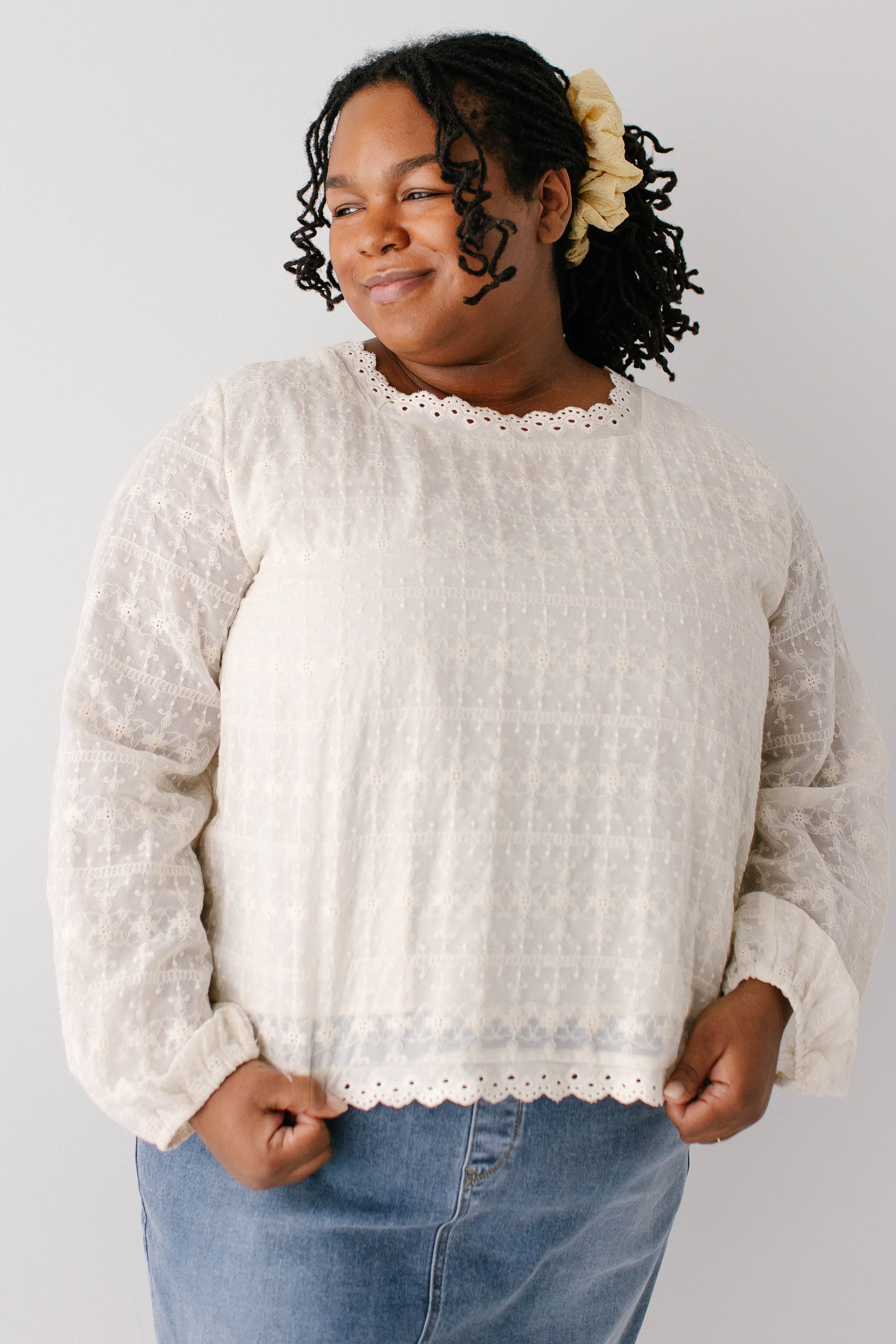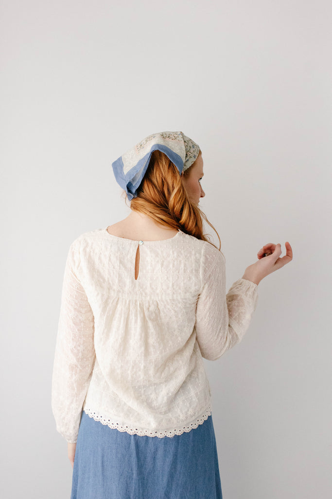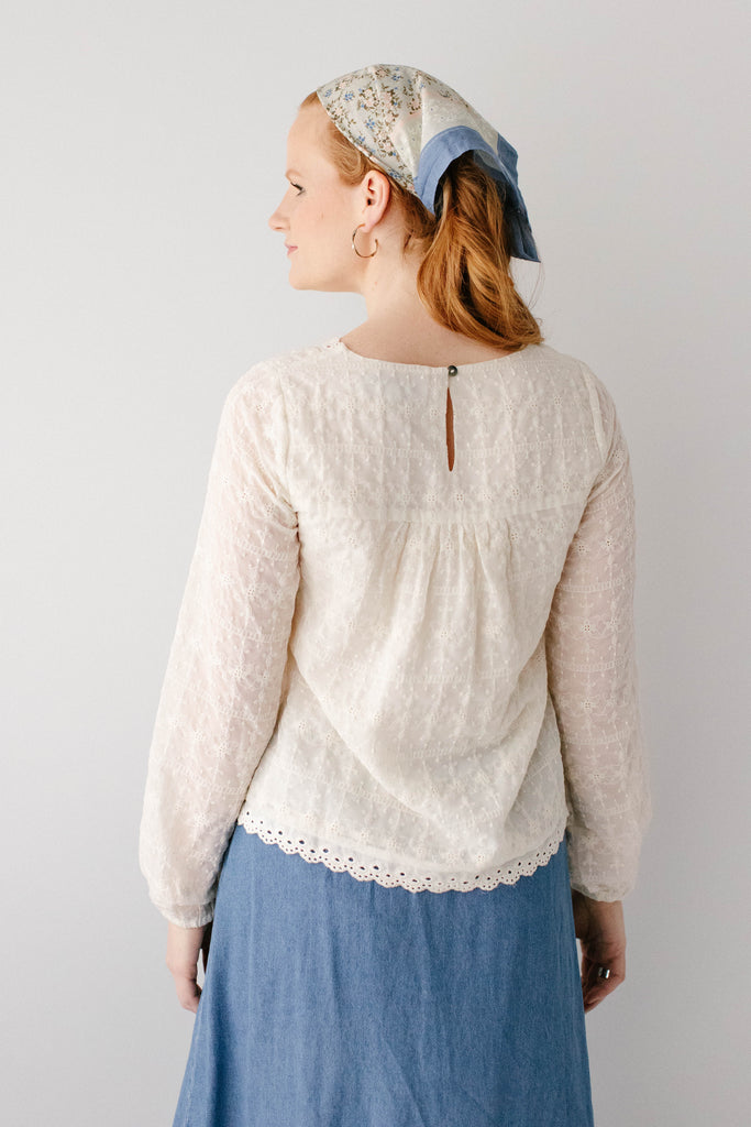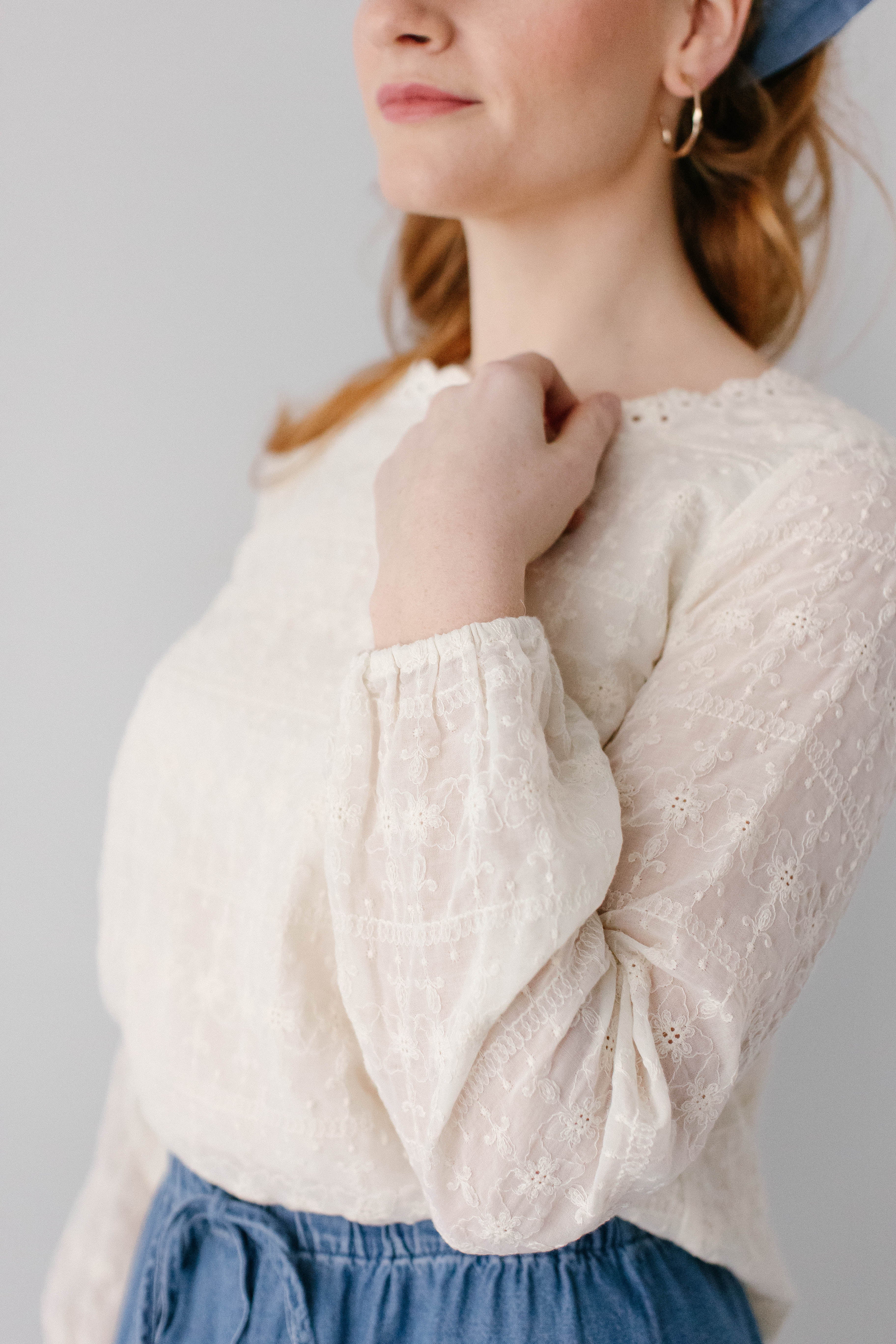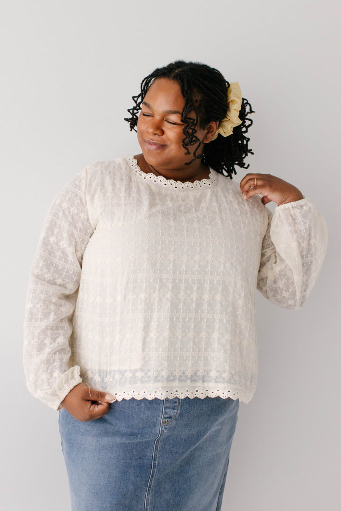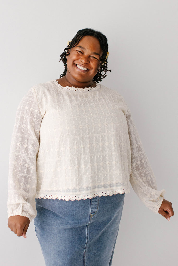 The perfect staple pieces are ones that can elevate an outfit with ease! The 'Victoria' Embroidered Lace Top features delicate embroidered lace detailing in a vintage cream color, a modest square neckline and eyelet detailing on the hem, is 100% cotton, and has a fully lined bodice. Pair the ‘Victoria’ with any of your favorite denim, tiered, or pleated skirts for the cutest outfit for a day out. Exclusively designed by us with you in mind.