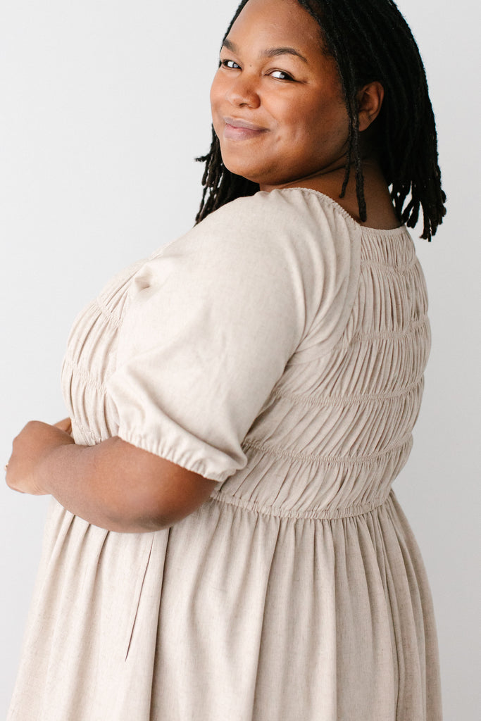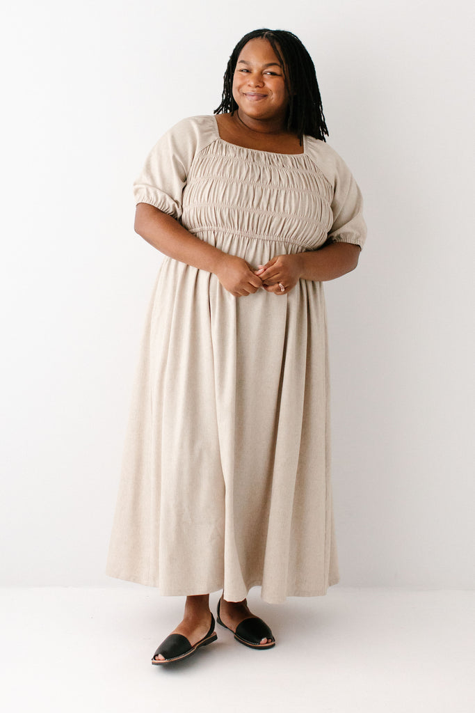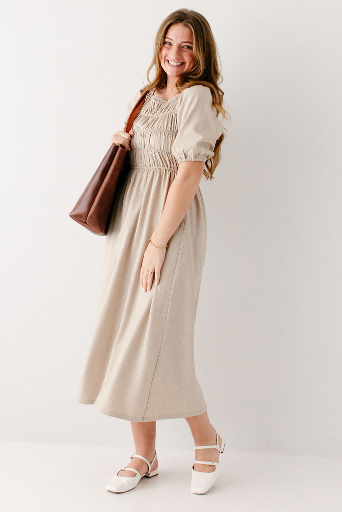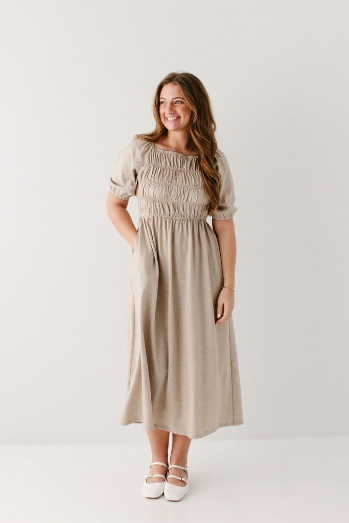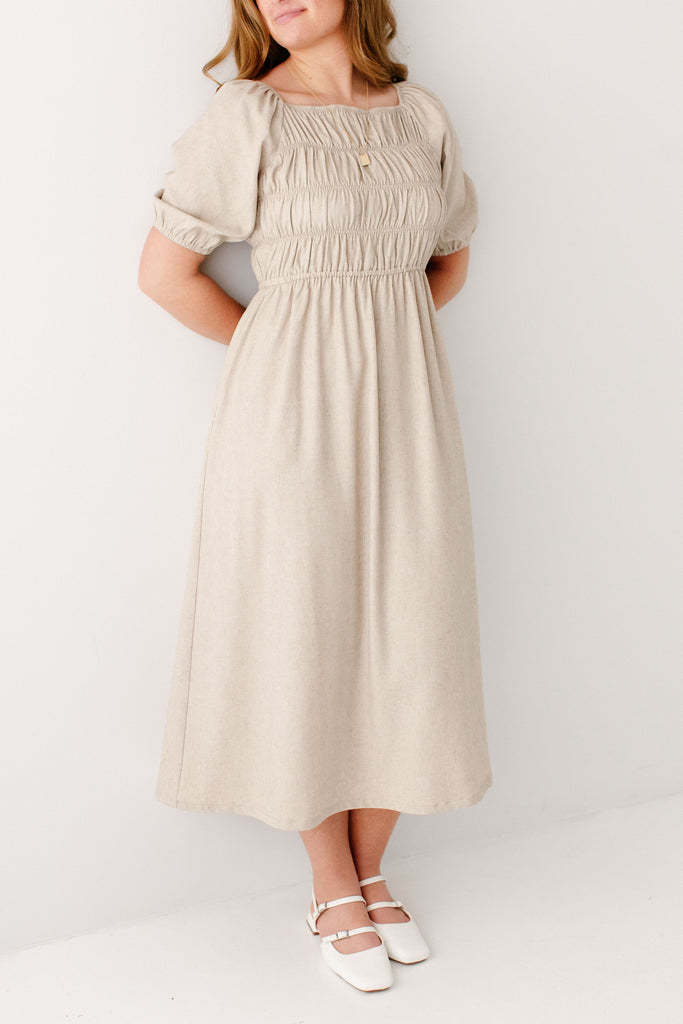'Willow' Square Neck Smocked Bodice Midi Dress