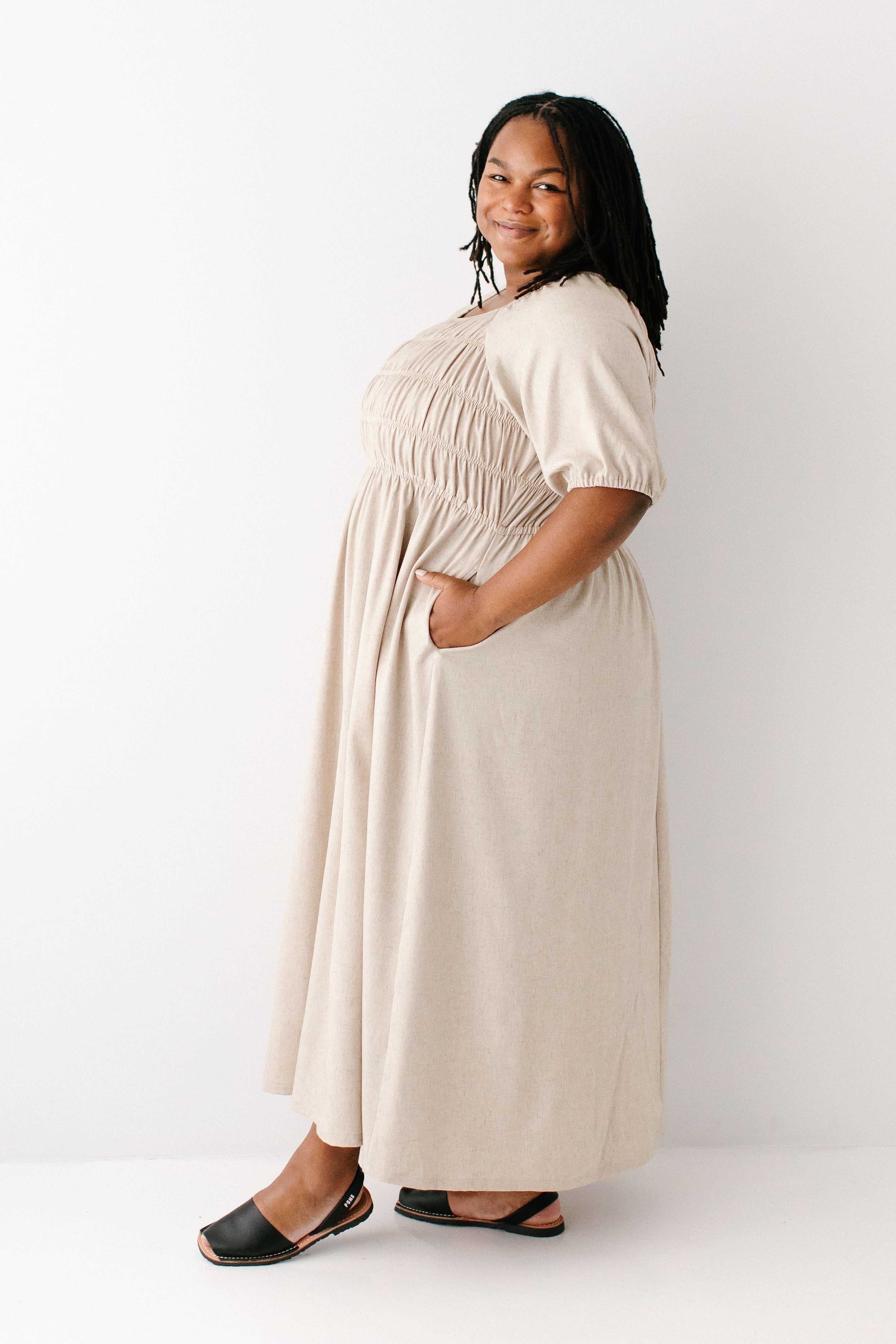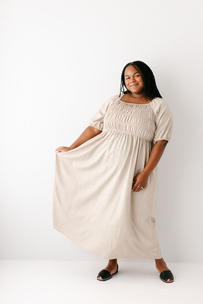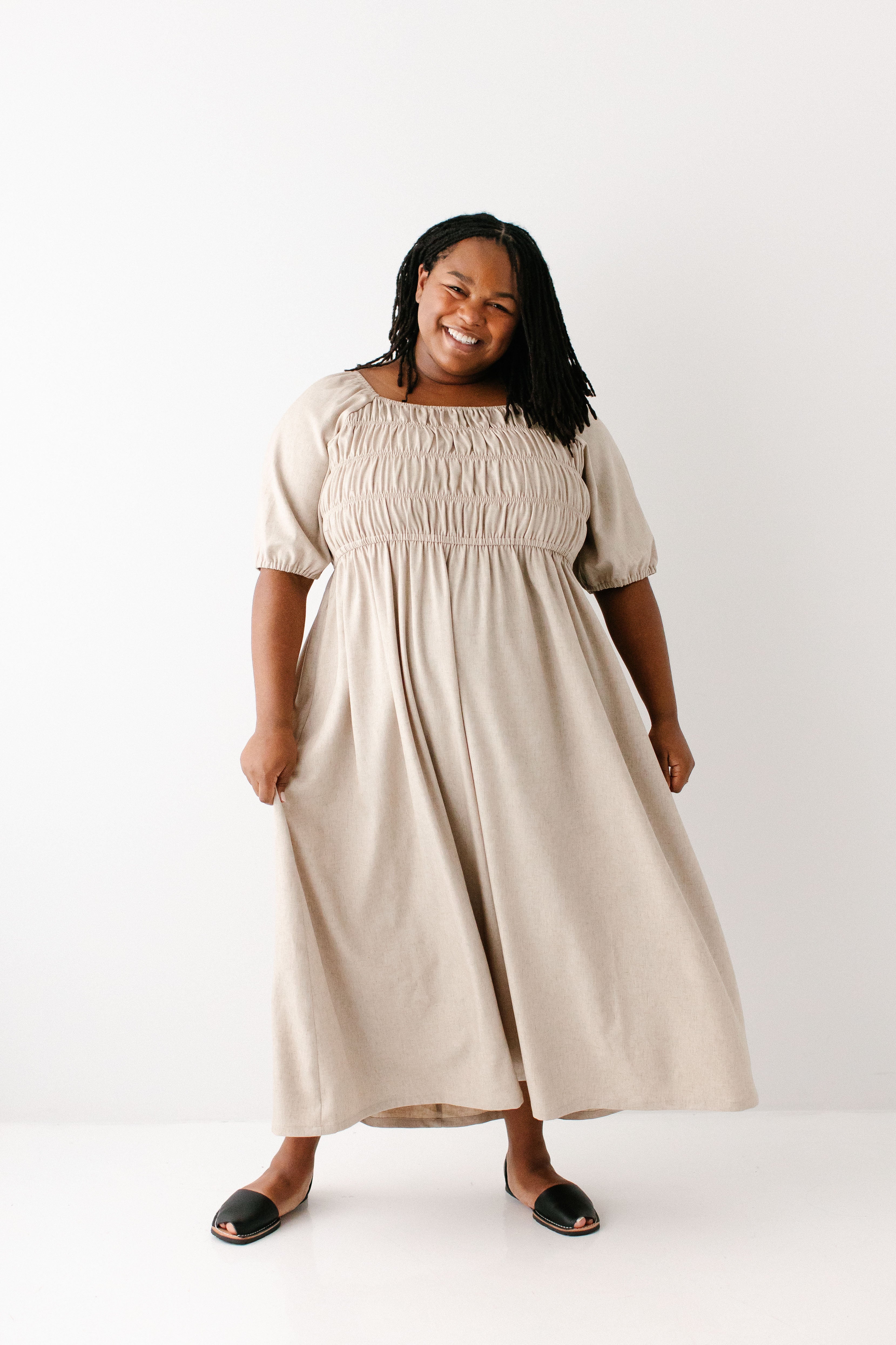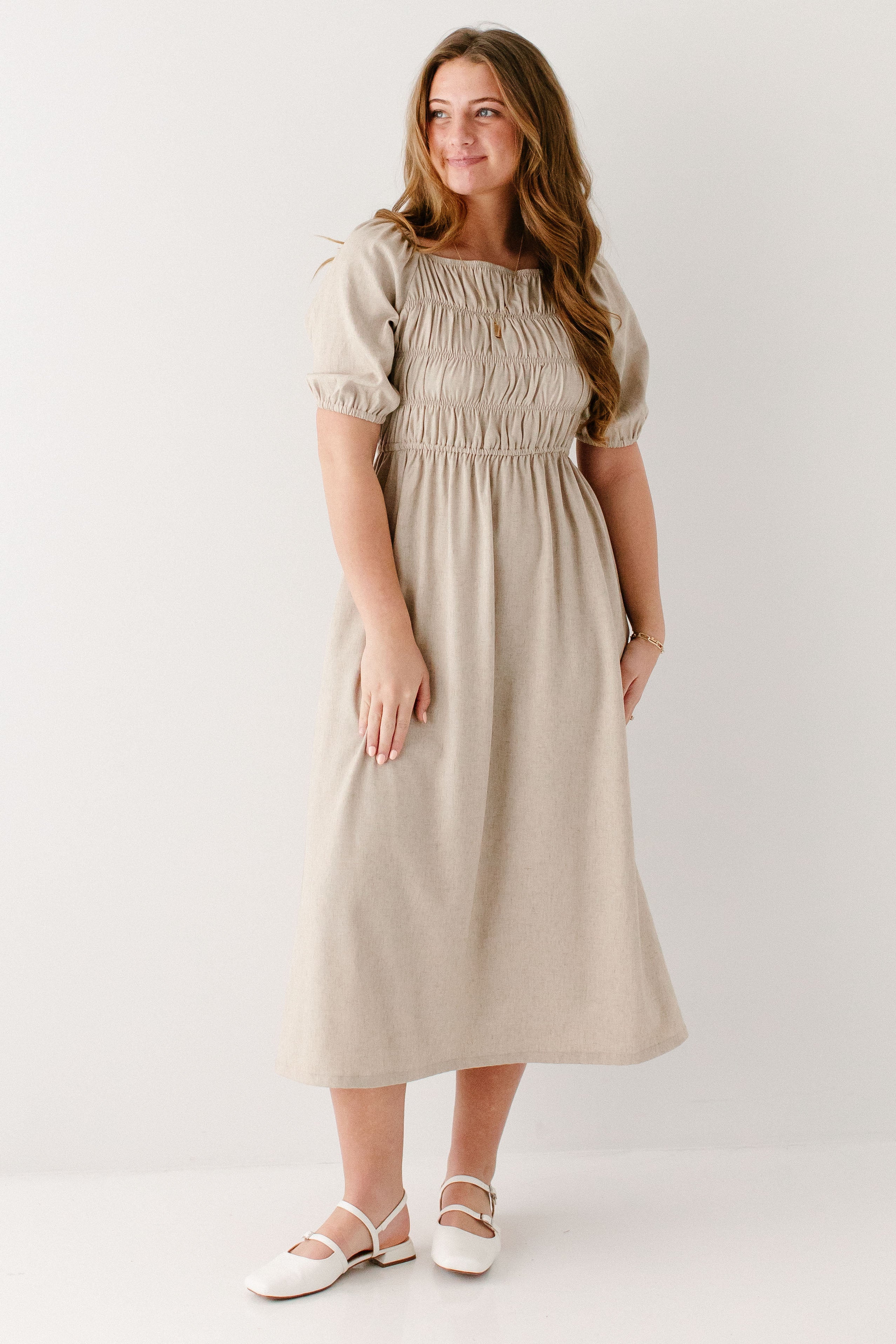 'Willow' Square Neck Smocked Bodice Midi Dress