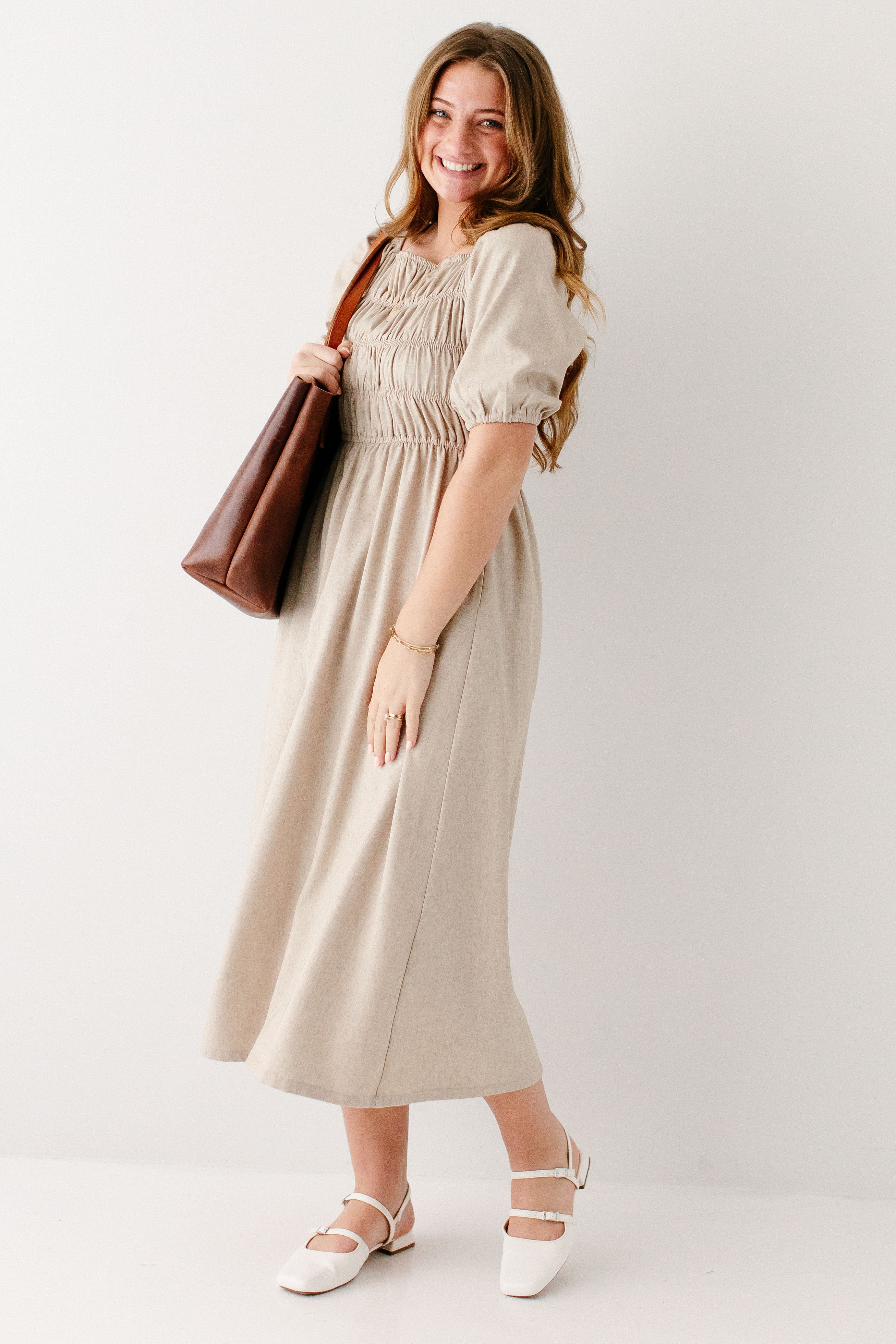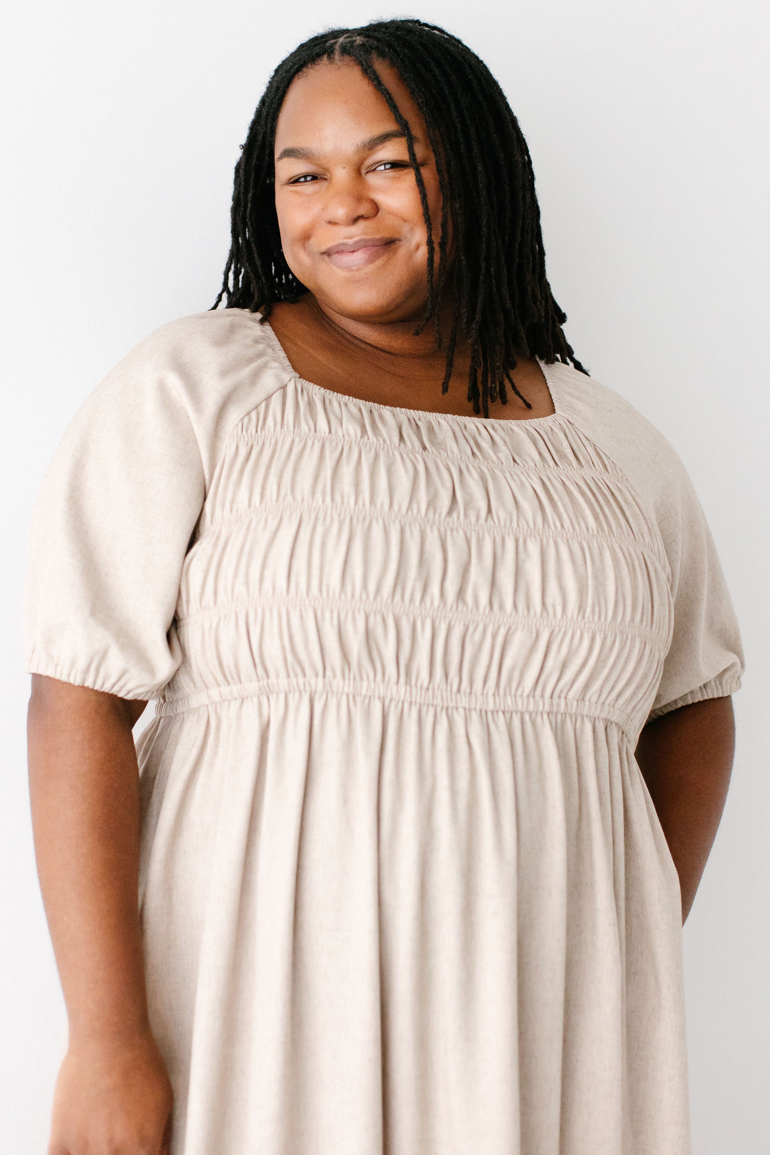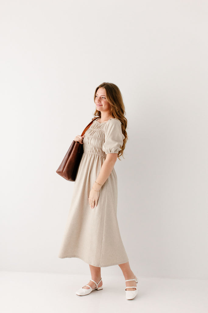 Introducing the 'Willow' Square Neck Smocked Bodice Midi Dress, the perfect dress for transitioning into spring! With a fun smocked bodice detailing, modest elastic square neck, smocked sleeves, and flattering midi length, this is a staple piece you will want to wear over and over again! Exclusively designed by us with you in mind.